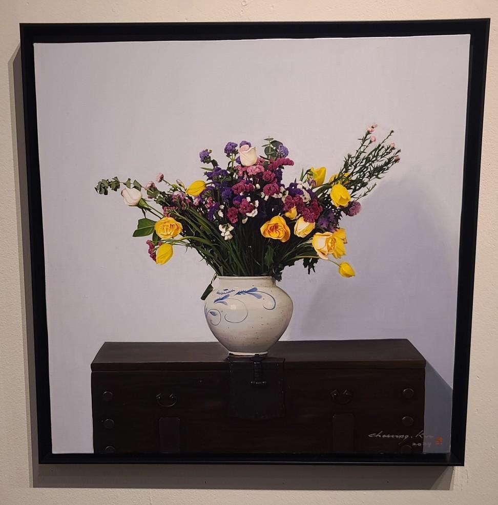 꽃 원본보기 꽃 구자승 (Koo Cha Soong) 전시명충북갤러리 시·군 문화예술기관 협력 초대전 <구자승 x 장지원> (Sep 25 - Oct 13, 2025) 크기70x70cm 제작년도2024