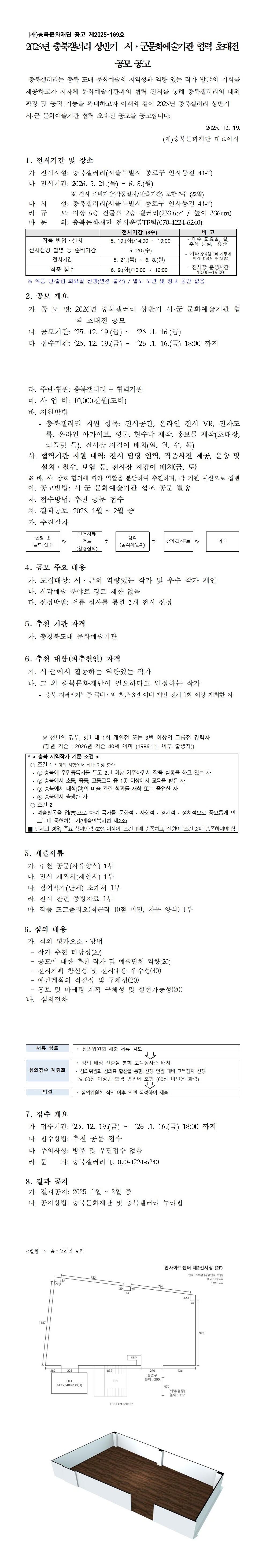 '공지사항' 컨텐츠 2026년 충북갤러리 상반기 시·군문화예술기관 협력 초대전 공모 공고 상세 내용 2026년 충북갤러리 상반기 시·군문화예술기관 협력 초대전 공모 공고 Dec 19, 2025 상세보기 접수방법: 추천 공문 접수 ((재)충북문화재단 문화사업추진단 전시운영TF팀) (접수처: hqmarche70@cbfc.or.kr) jpg 문서 2026년 충북갤러리 상반기 시군 문화예술기관 협력 초대전 공고문.jpg hwp 문서 2026년 충북갤러리 상반기 시군 문화예술기관 협력 초대전 공고문 및 신청서류.hwp NEXT LIST
